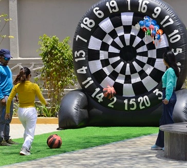 Kick the ball and hit the dartboard – a sporty game with a fun aim!