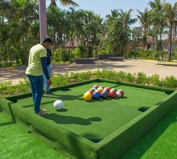 Play a big game of pool using your feet and footballs – fun twist on two sports!