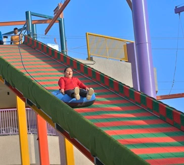 Slide down a 66-foot dry slide – enjoy the twists and turns without water!