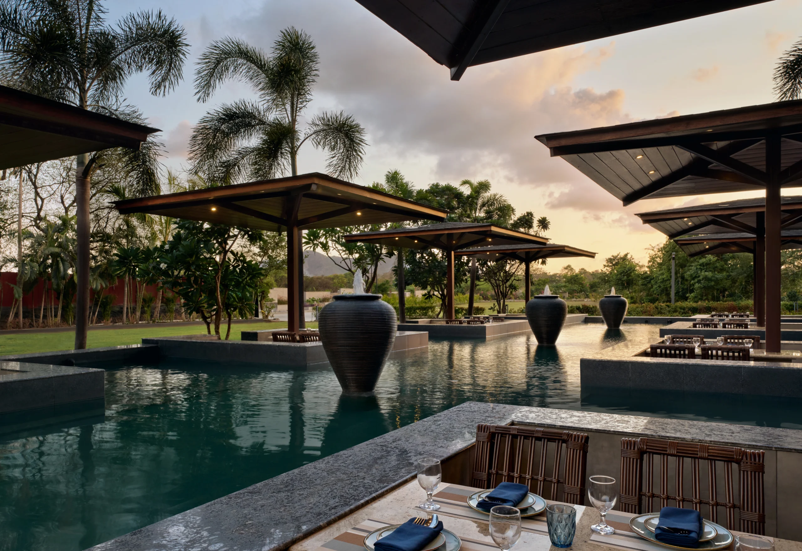 - Fine dining experience enhanced by aesthetic lighting and a tranquil poolside vibe