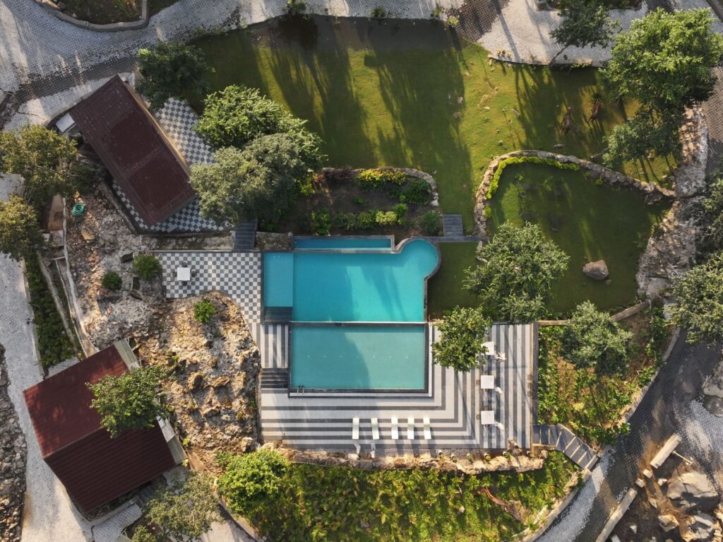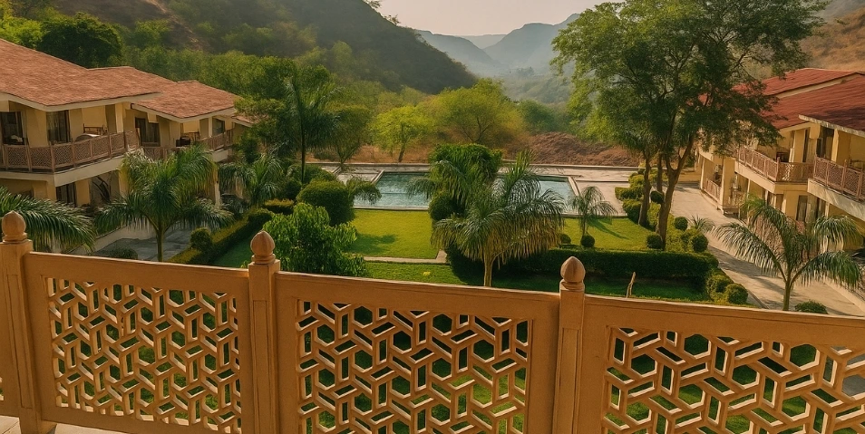 - Scenic backdrops: Aravalli Hills, lawns, and pools.