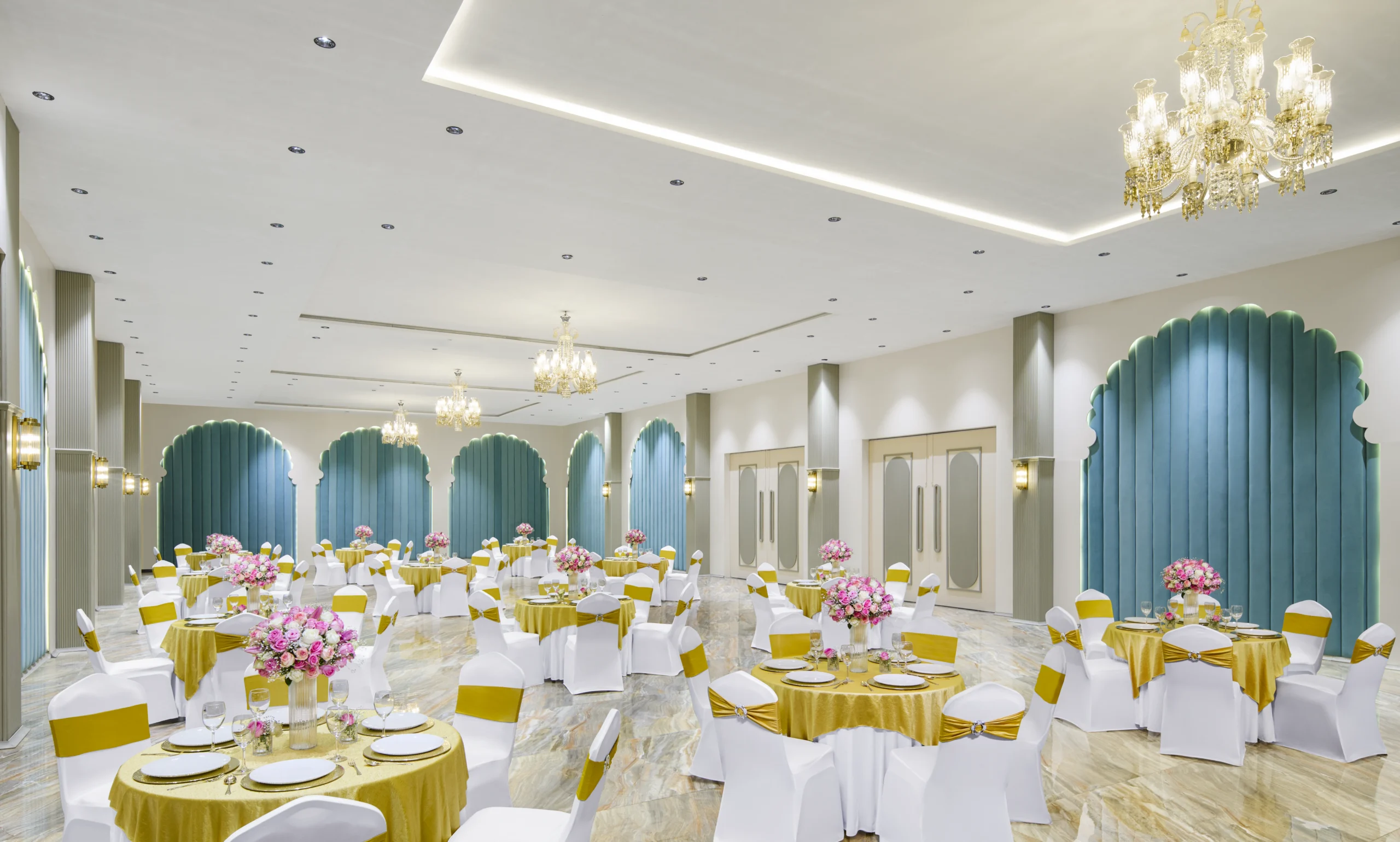 A grand venue with spacious interiors and flexible seating ideal for hosting lavish wedding celebrations.