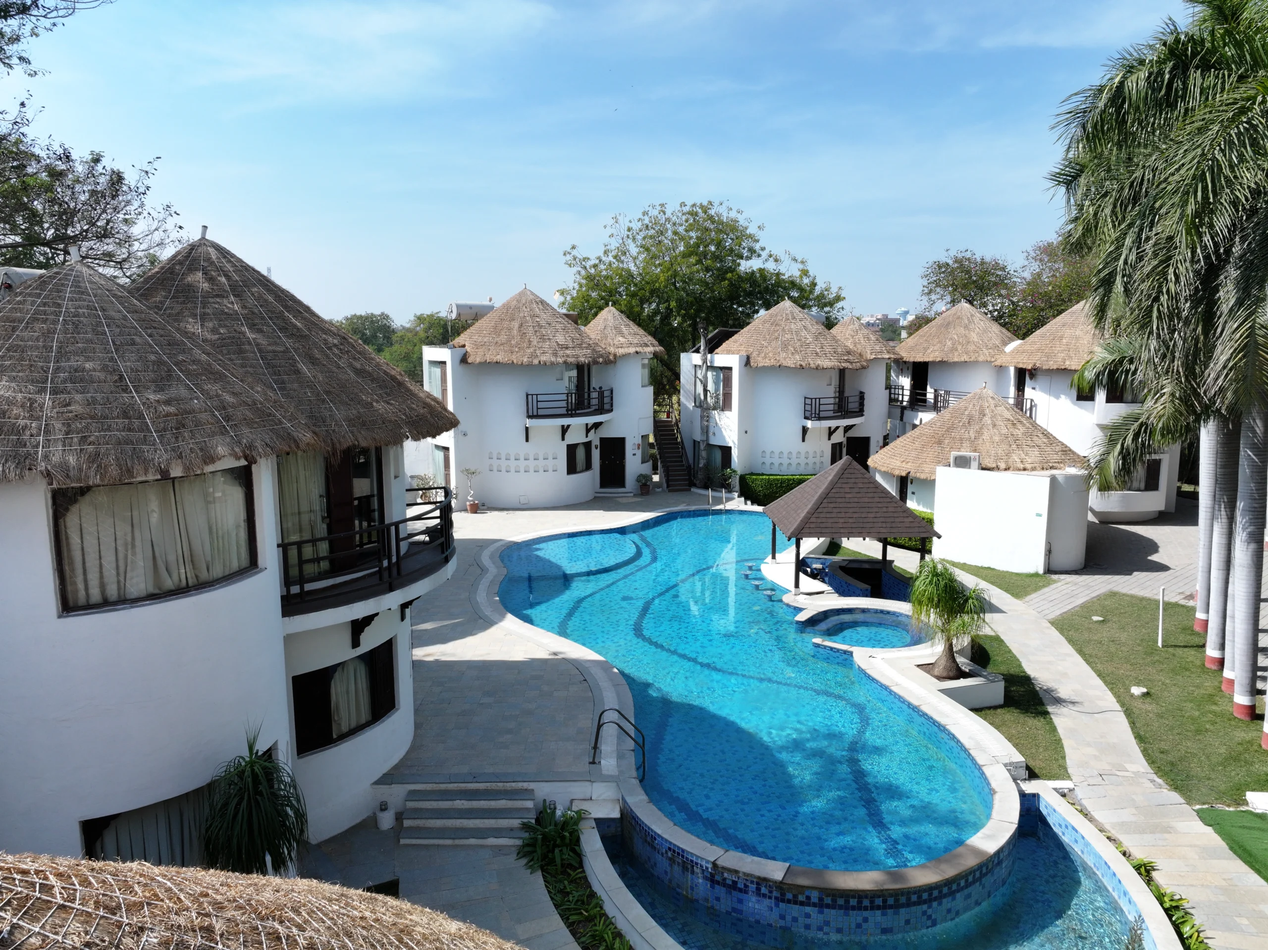 Experience a stay unlike any hotel room. Our Rajwadi Cottages offer the warmth of a home, the privacy of a retreat, and the charm of traditional Rajwadi architecture - all within a modern resort.