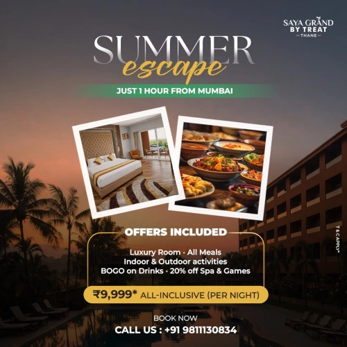 A complete stay experience just 1 hour from Mumbai – luxury room, all meals, rooftop pool, and refreshing mocktails surrounded by lush greenery.