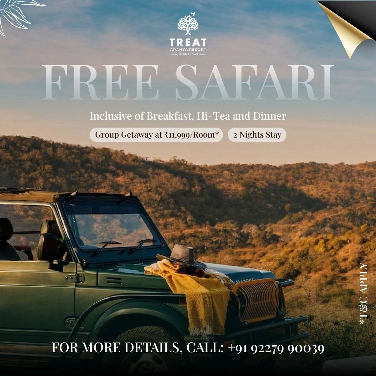 Book 2 Nights for Group/Family Stay at Rs. 11,999/- per room and get a Free Jeep Safari.